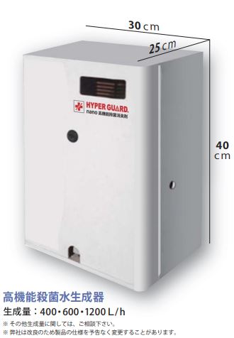 HYPER GUARDはそれらの問題を解消すべく新たな方式を開発し、実用性の高い「真」の殺菌水生成器を完成させました。
