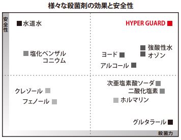 HYPER GUARDは極めて高い殺菌力を誇るグルタラールと同等の殺菌力を持ちながらも、安全かつ圧倒的な経済性を実現致しました。