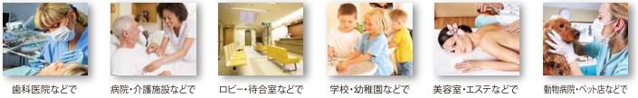 また常に発生する臭気に対し長時間、人や動物のいる空間に連続的に噴霧しても生体に悪影響 を及ぼさないため幼稚園から介護施設、病院にいたるまで安心してご使用が頂けます。